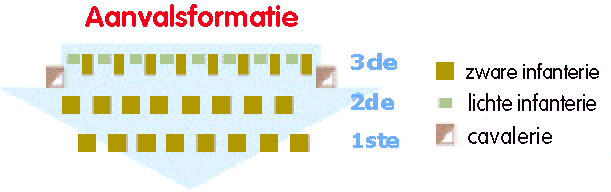 Een éénvoudige aanvalsformatie van het Romeins legioen bestond uit drie rijen. De eerste twee rijen waren bemand met zware infanterie en de derde rij bestond uit: cavalerie, lichte en zware infanterie.